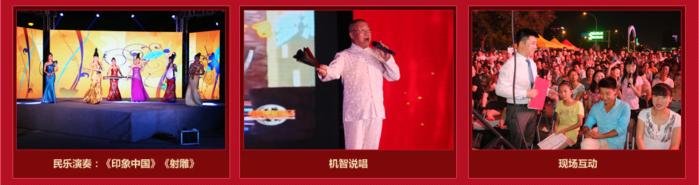7月19日晚19:30分,由廊坊市文化廣電新聞出版局、廊坊市工商業(yè)聯(lián)合會(huì )主辦的2014“歡樂(lè )城鄉 文化惠民”民企之聲文藝晚會(huì )在新華路京客隆廣場(chǎng)盛大開(kāi)幕。7月19日至9月21日期間每周六、日晚,主辦單位均選擇一家較有實(shí)力的民營(yíng)企業(yè)承辦活動(dòng),以各承辦單位自編自演的節目為主,通過(guò)歌曲、舞蹈、相聲、小品等演藝形式展示企業(yè)風(fēng)采。