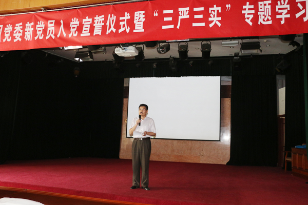 講座開(kāi)始前,集團黨委副書(shū)記鐘崇鶴同志就本次黨員學(xué)習教育專(zhuān)題講座的意義進(jìn)行了闡述,并代表集團黨委對新黨員提出了希望,就黨員管理人員如何“踐行‘三嚴三實(shí)’、打造高效團隊”提出了要求。鐘崇鶴同志指出,新黨員是各級黨組織的新鮮血液,也是在黨的事業(yè)和中太各項工作中涌現出來(lái)的優(yōu)秀分子。在此,我代表集團黨委向新黨員同志們提出五點(diǎn)希望和要求:一是希望新黨員要不斷增強入黨的光榮感和責任感,堅定對黨的信念,要把為人民服務(wù)的宗旨牢記在心;二是要始終以黨員的標準規范嚴格要求自己,不但在組織上入黨,還要在思想上入黨,使自己真正成為合格的共產(chǎn)黨員;三是在工作崗位中,以身作則,率先垂范,起先鋒模范作用,具有高尚的職業(yè)道德,忠于職守,正確履行自己的崗位職責;四是要不斷學(xué)習,提升自己的履職能力和素質(zhì),只有不斷加強政治理論和業(yè)務(wù)知識的學(xué)習,才能具有較高的政治理論素質(zhì)、堅定正確的政治方向;五是嚴格要求自己,不斷提高自己保護和防范能力,從自我做起,從小事做起,在今后工作中,嚴守黨的紀律,更好的發(fā)揮黨員先鋒模范作用。