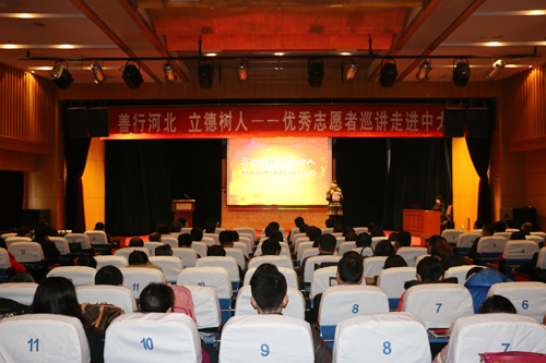 11月18日上午,由河北省文明委、共青團省委、省教育廳、省志愿服務(wù)聯(lián)合會(huì )、省志愿服務(wù)學(xué)院等部門(mén)聯(lián)合開(kāi)展的“善行河北、立德樹(shù)人——優(yōu)秀志愿者巡講(2015)活動(dòng)”, 來(lái)到中太進(jìn)行巡講。受集團黨委書(shū)記、董事局主席李文健同志委托,集團黨委副書(shū)記、企業(yè)文化中心總監鐘崇鶴同志代表集團黨委講話(huà)致辭,向省優(yōu)秀志愿者巡講活動(dòng)團成員和市委文明辦的各位領(lǐng)導蒞臨中太,表示熱烈的歡迎!并畫(huà)龍點(diǎn)睛地闡明了巡講活動(dòng)的重要意義和明確了下一步學(xué)習的方向和工作任務(wù)。