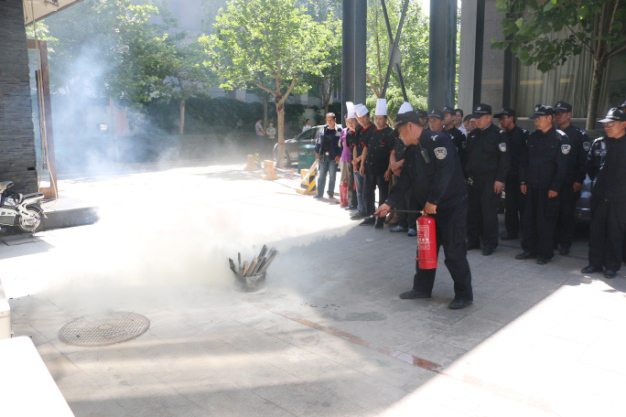培訓結束后,在資產(chǎn)管理部總經(jīng)理、義務(wù)消防隊隊長(cháng)張志強的正確指導下,在中太院內現場(chǎng)進(jìn)行了模擬疏散、逃生、救援和撲滅初期火災的演練工作。