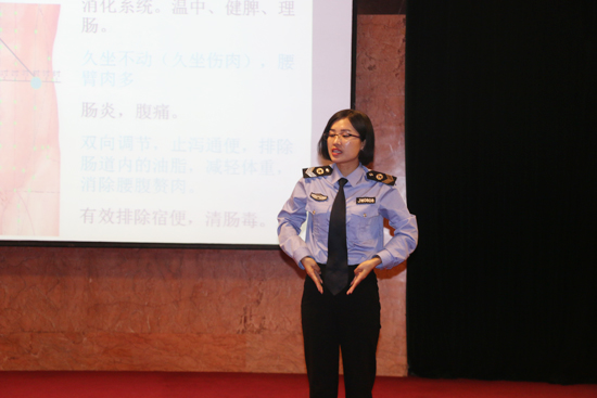 在中國環(huán)境健康與衛生安全促進(jìn)會(huì )河北分會(huì )的大力支持下,中國安全健康教育中心河北站特邀講師、省健康教育專(zhuān)業(yè)委員會(huì )委員、宣教科科長(cháng)孫京苗走進(jìn)中太大廈,圍繞現場(chǎng)緊急救護知識、空氣污染的危害以及健康防護、經(jīng)絡(luò )穴位養生知識、職業(yè)病的防治等內容,從實(shí)際案例出發(fā),深入淺出、形象生動(dòng)的剖析健康的重要性以及相關(guān)健康危險源的防治方法,同時(shí)還邀請現場(chǎng)員工代表上臺,與老師合作為現場(chǎng)員工形象的解析了物理治療的原理。孫京苗老師的精彩授課得到了在場(chǎng)員工的一致認可。