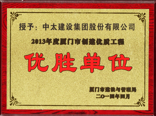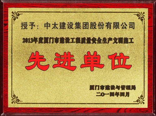 近日,中太建設集團榮獲2013年度“廈門(mén)市創(chuàng )建安全文明工地優(yōu)勝單位”、“廈門(mén)市建設工程質(zhì)量安全生產(chǎn)文明施工先進(jìn)單位”、“廈門(mén)市創(chuàng )建優(yōu)質(zhì)工程優(yōu)勝單位。何波、曹仰高被評為先進(jìn)個(gè)人。(第九工程局)