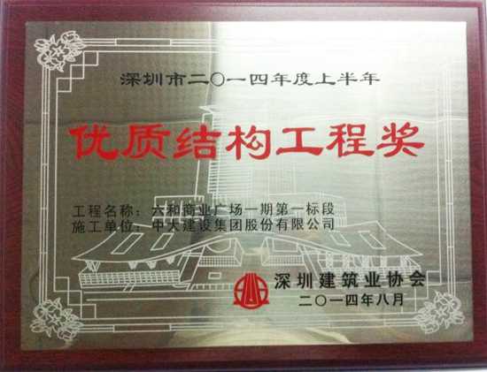 8月28日,深圳建筑業(yè)協(xié)會(huì )發(fā)布“關(guān)于表彰2014年度上半年深圳市優(yōu)質(zhì)結構工程獎的決定”公告。第二工程局承建的房建項目“六和商業(yè)廣場(chǎng)一期第一標段”榮獲深圳市2014年度上半年優(yōu)質(zhì)結構工程獎。