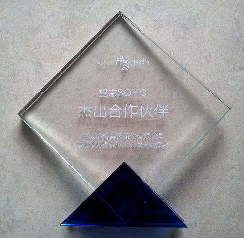 日前,soho中國有限公司向中太建設集團頒發(fā)“望京soho杰出合作伙伴”獎杯,以感謝集團公司在建設望京soho過(guò)程中給予的巨大支持,同時(shí)送上一張望京soho實(shí)景照片。soho中國有限公司董事長(cháng)潘石屹在照片上親筆寫(xiě)道:“您的汗水和努力,創(chuàng )造了這座建筑奇跡!”