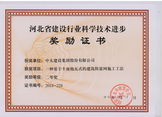 2018年河北省建設行業(yè)科學(xué)技術(shù)進(jìn)步獎勵證書(shū)匯總