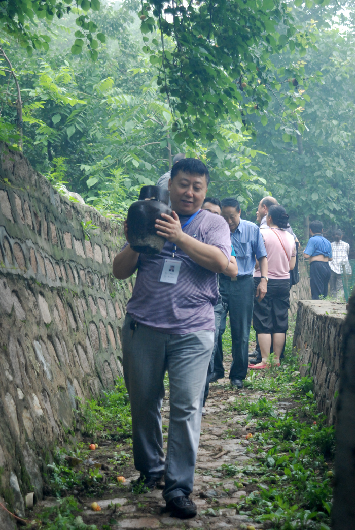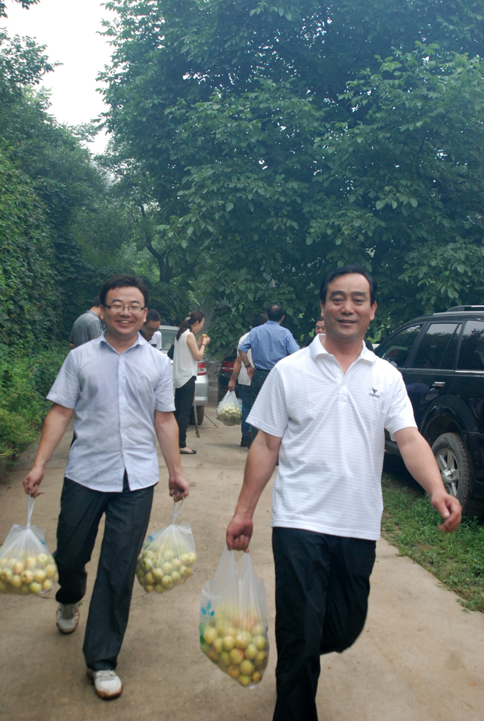 從京承高速公路下道,兩輛大巴車沿著崎嶇山路緩慢行駛。山道兩側(cè)灌木郁郁蔥蔥,置身于這天然氧吧,清新的空氣順暢地能讓人一下子呼吸到了丹田而心神氣爽。一路上,路邊采摘的果園比比皆是?諝庵心枪麑(shí)散發(fā)出的清香,直入心脾,令人口舌生津。